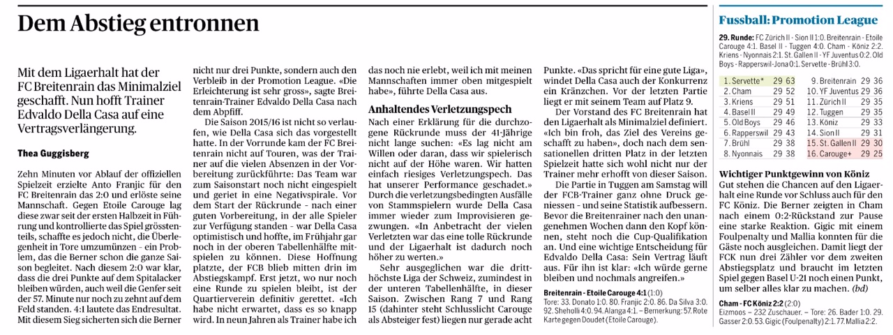 Bola pra frente, Tuggen x Breitenrain, 28.05.2016, 16:00h.